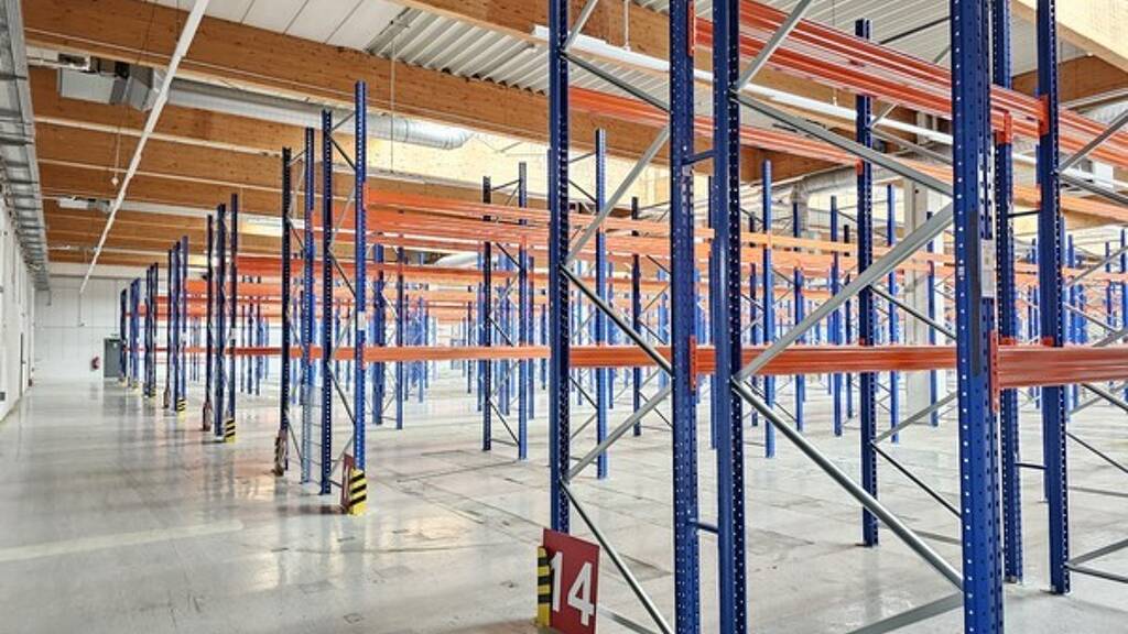 Ca. 3.260 m² große Halle mit Regalierung und Ergänzungsflächen