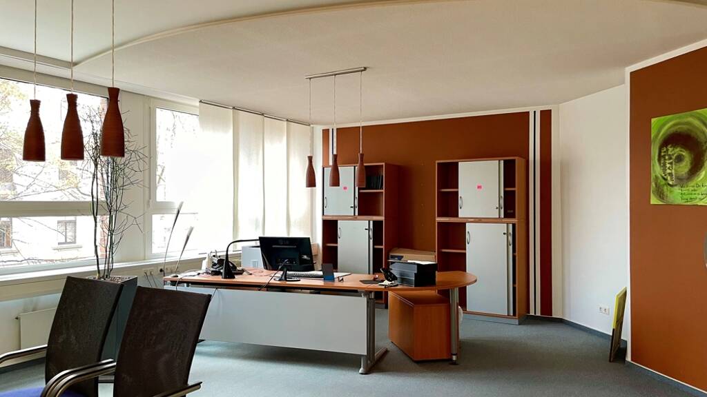 Das Bürogebäude, in dem sich die Fläche befindet, wurde 1984 mit einer Rotklinkerfassade und grünen Alu-Fenstern voll unterkellert und mit eigener Tiefgarage sowie Außenstell-plätzen auf einem Parkdeck errichtet. Die hier zur Vermietung stehende Bürofläche von ca. 510 m² befindet sich im 2. Obergeschoss und ist über das Haupttreppenhaus mit dem Personenaufzug erreichbar. An den beiden gegenüberliegenden Enden des Gebäudes befinden sich zudem 2 Treppenhäuser. Die Beheizung des Gebäudes erfolgt über Fernwärme. Die Bürofläche wurde 2008 sowie auch 2012 den Anforderungen der Mieter entsprechend auf den aktuellen Stand gebracht.