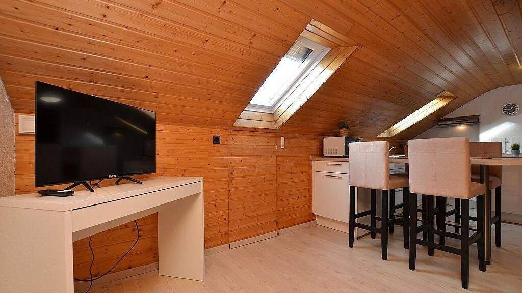 Die ca. 40m² große Wohnung, welche mit Laminatboden ausgelegt ist, befindet sich im 2. Obergeschoss eines Mehrfamilienhauses. Die Möblierung im Wohn- und Essbereich besteht aus einer Couch mit Couchtisch, Sessel, Regal mit TV und Kommode. Die helle Einbauküche ist mit einem Herd mit Backofen, Wasserkocher, Toaster, Kaffeemaschine, Mikrowelle, Kühlschrank und sämtlichen Küchenutensilien ausgestattet. Hier befindet sich außerdem ein Esstisch mit vier Barstühlen. Das gemütliche Schlafzimmer ist mit einem Doppelbett mit Nachttischen, Kleiderschränken und einem Sessel möbliert. Das hell geflieste Tageslichtbad verfügt über eine Dusche, Regal und ein WC. In der angegebenen Miete ist eine Betriebskostenpauschale von 180€ enthalten. Bei einer Anmietung von 2. Person erhöht sich der Mietpreis um 50€/Monat. Bei Auszug wird eine Endreinigung je nach Aufwand mit der Kaution verrechnet. Die Bushaltestelle ist ca. 5 Minuten fußläufig zu erreichen. Die Innenstadt Würzburg ist ca. 20 Minuten mit dem Auto zu erreichen.