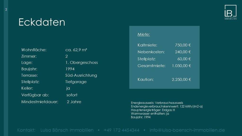 2 Zimmer  â€˘  63 m²  â€˘  1. Geschoss  â€˘  frei ab sofort