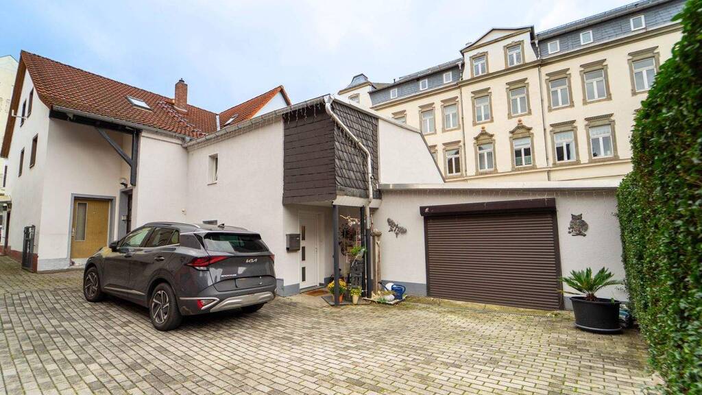 einer erweiterbaren Gewerbeeinheit mit einer Fläche von rund 55 m². Eine große Garage sowie reichlich Platz im Hof sind attraktive Begleitmerkmale für einen entspannten Alltag.
