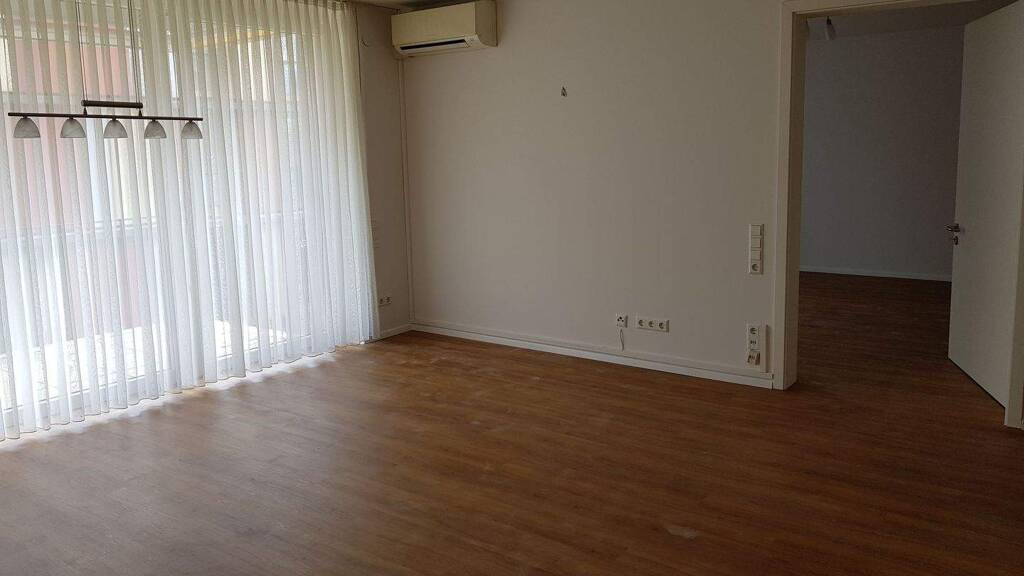Die Wohnung befindet sich im 1. Obergeschoss und hat eine Wohnfläche von ca. 63 m². Sie ist ausgestattet mit einer schönen Einbauküche inklusive aller Elektrogeräten. Von dem Wohn-/Essbereich hat man direkten Zugang zum Balkon mit schöner Markise. Im Schlafzimmer befindet sich ein großer Schlafzimmerschrank. Im Wohn- und Schlafzimmer sind Klimageräte montiert. Das innenliegende Duschbad ist mit altersgerechten Unterstützungen ausgestattet.