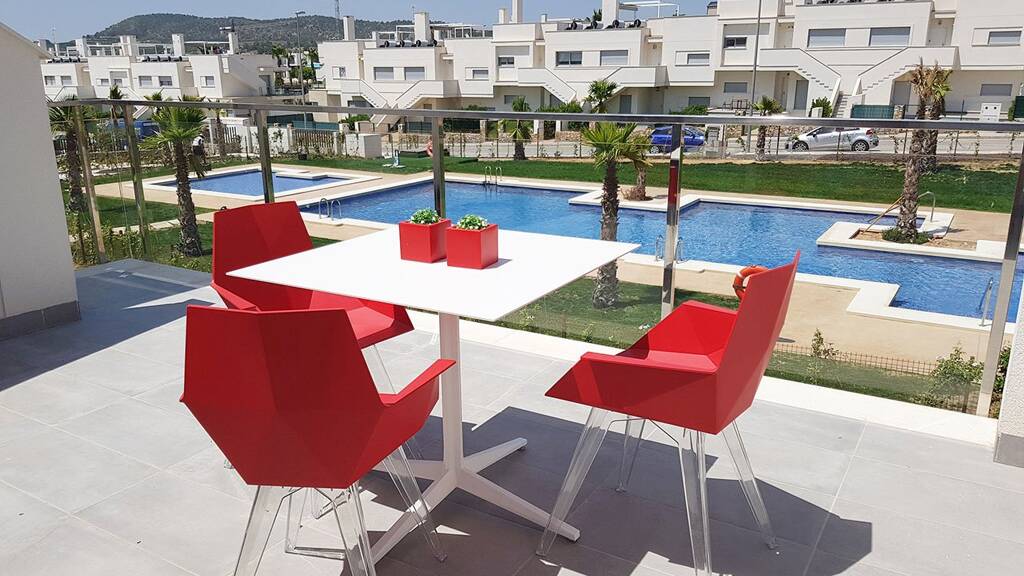 Die kleine Wohnanlage befindet sich in landschaftlich reizvoller Umgebung direkt neben der Golfanlage Vistabella Golf, nur ca. 20 Autominuten vom Meer entfernt. Die wichtigsten Einkaufsmöglichkeiten, ein Supermarkt, eine Apotheke sowie diverse Bars und Restaurants sind in der Golfanlage vorhanden und alle weiteren Versorgungsmöglichkeiten findet man in den umliegenden Ortschaften Los Montesinos, San Miguel de Salinas, Orihuela und Torrevieja. Der Flughafen von Alicante ist über die Autobahn in einer guten halben Stunde zu erreichen.