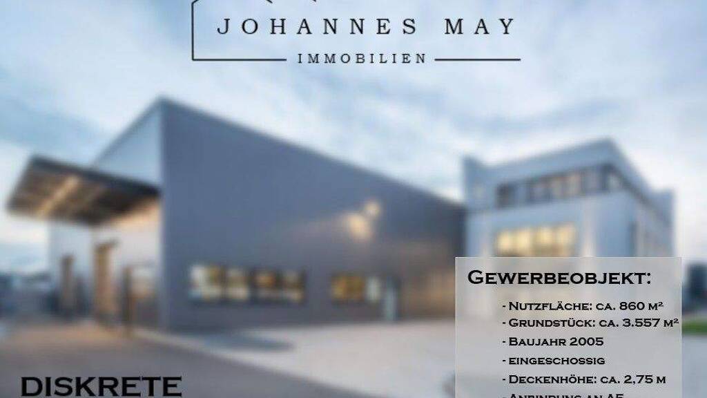 Bei der angebotenen Immobilie handelt es sich um ein modernes Gewerbeobjekt aus dem Baujahr 2005 in sehr guten Zustand. Das Gebäude verfügt über eine Nutzfläche von ca. 860 qm Nutzfläche und befindet sich auf einem ca. 3557 qm großen Grundstück mit ausreichend Stellplätzen. Die Liegenschaft überzeugt durch ihre funktionale Raumaufteilung. Besonders hervorzuheben ist die Bauweise. Lediglich die mittlere Wand ist tragend, wodurch sich die Grundrissgestaltung flexibel an neue Konzepte anpassen lässt. Sanitärräume sind ebenfalls vorhanden. Eine PV-Anlage mit fast 100kWp ergänzt das Gebäude energetisch. Die Heizung wurde im Jahr 2015 erneuert. Das Objekt eignet sich für Büro- und Verwaltungsräume, Therapie- und Praxisflächen, Verkaufsräume und viele andere gewerbliche Objekte. Die Immobilie befindet sich in einem Gewerbegebiet. Die Lage überzeugt durch ihre hervorragende Verkehrsanbindung und gute Infrastruktur, was diese für vielfältige gewerbliche Konzepte attraktiv macht. Die Immobilie wird diskret vermarkten. Wir bitten um Verständnis, dass wir weitere Informationen nur auf Nachfrage und nachhaltigem Interesse herausgehen können.