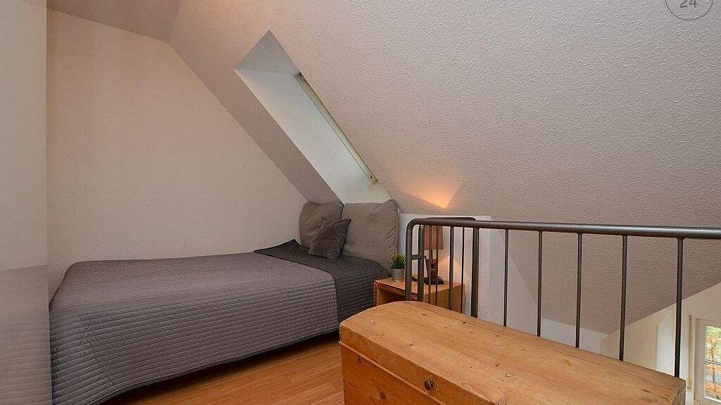 Die ca. 36m² große Wohnung, welche mit Laminatboden ausgelegt ist, befindet sich im 3. Obergeschoss eines Mehrfamilienhauses. Der Wohn- und Essbereich ist offen gestaltet. Dieser ist mit einer großen Couch mit Couchtisch, Flachbild-TV und einer Kommode möbliert. Die integrierte Einbauküche ist mit einem Herd mit Backofen, Kühlschrank mit Gefrierfach, Wasserkocher und sämtlichen Küchenutensilien ausgestattet. Hier befindet sich auch ein Esstisch für zwei Personen. Das hell geflieste Bad verfügt über eine Dusche, beheizbaren Handtuchhalter, WC und einen Waschtrockner. Über eine Wendeltreppe ist der offene Schlafbereich zugänglich. Dieser ist mit einem Doppelbett, Nachttisch, Kleiderschrank und einem Regal möbliert. In der angegebenen Miete ist eine 250€ Betriebskostenpauschale enthalten. Hinzu kommen die Kosten für Strom nach Verbrauch. Ein PKW-Stellplatz ist im Mietpreis inkludiert. Bei Auszug wird eine Endreinigung je nach Aufwand mit der Kaution verrechnet. Zell am Main liegt nur 6km von der Innenstadt entfernt. Ideal für Mitarbeiter der Firmen BASF, Noell oder König & Bauer.