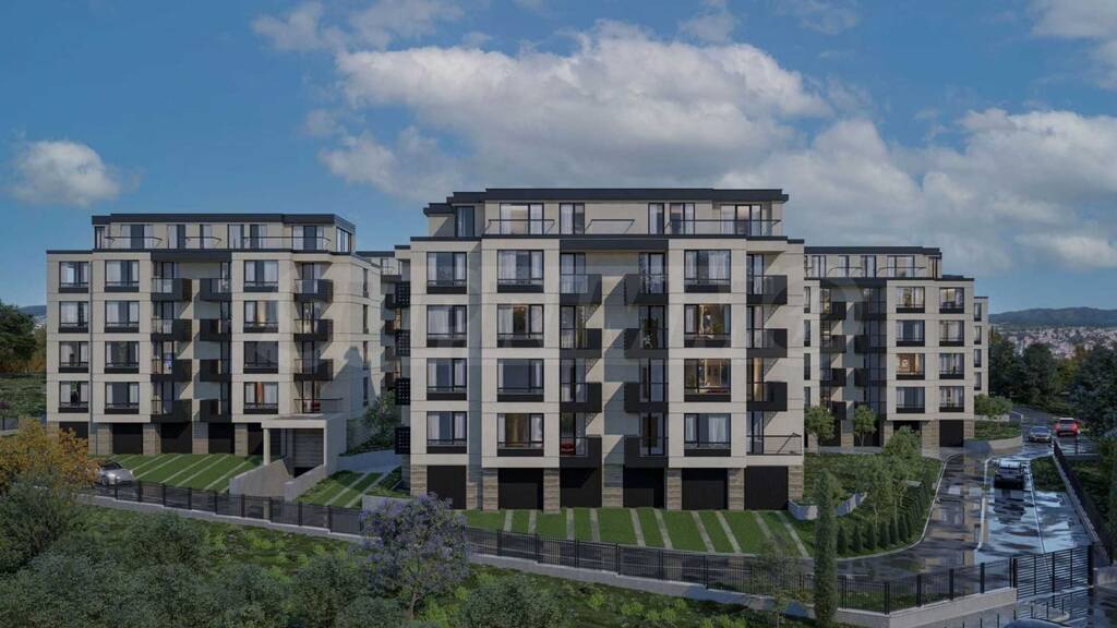 Das neu errichtete Gebäude ist Teil einer neuen, geschlossenen Wohnanlage mit sieben Gebäuden in verkehrsgünstiger Lage, nur 300 Meter von der Metrostation Gorna Banya (Linie 3) entfernt. Die Anlage ist sowohl mit dem Auto als auch über den Autobahnring schnell erreichbar. Sie erstreckt sich über ein beeindruckendes, 4 Hektar großes Gelände und bietet kontrollierten Zugang, großzügige Grünflächen und einen Kinderspielplatz.