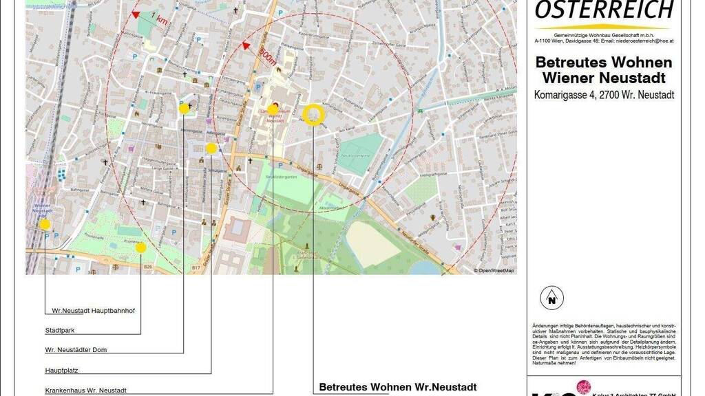 Die Wohnanlage liegt zwischen der Waisenhausgasse und der Komarigasse, direkt neben dem Krankenhaus und nur etwa 500 Meter vom Stadtzentrum entfernt. Einkaufsmöglichkeiten wie ein Supermarkt und eine Bäckerei befinden sich ebenfalls in unmittelbarer Nähe - ideal für den täglichen Bedarf.