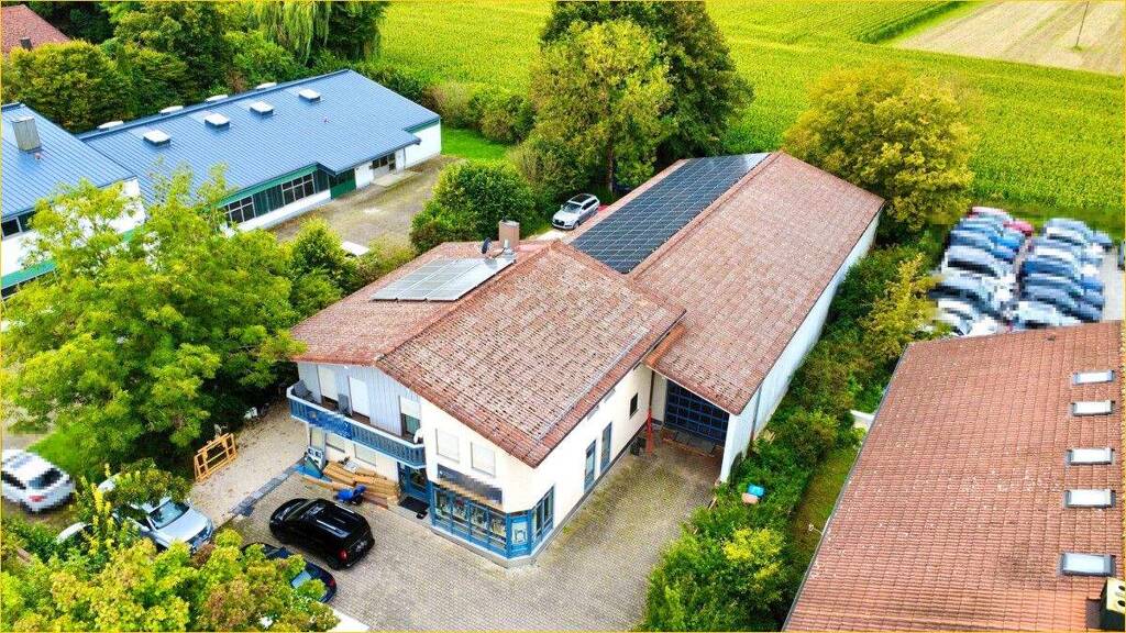 Die Immobilie liegt in Moosinning im Landkreis Erding und verbindet Wohnen und Arbeiten perfekter Art und Weise. Gelegen im Mischgebiet mit guter Anbindung nach Erding, zur A92 und zum Flughafen München. Auf einem Grundstück von etwa 1.668 Quadratmetern stehen insgesamt rund 595 m² Quadratmeter Nutz- und Gewerbefläche zur Verfügung. Diese teilen sich in ein Wohn- / Bürogebäude und eine Produktionshalle auf.