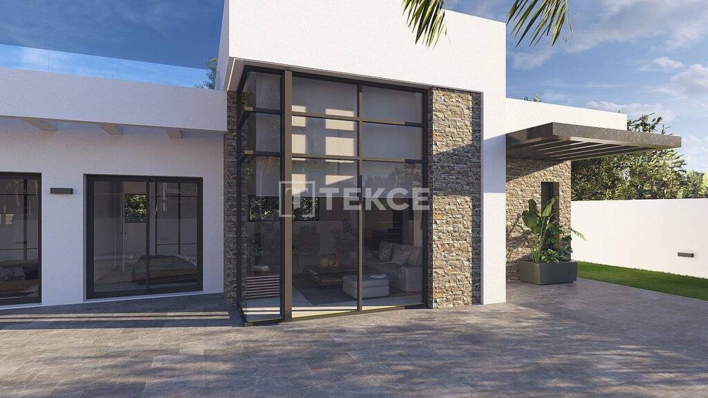 Im Inneren zeichnen sich die Villen durch helle, offene Grundrisse mit modernem Design und hochwertigen Oberflächen aus. Die Innenausstattung umfasst Porzellanböden, voll ausgestattete Küchen mit kompakten Arbeitsplatten, stilvolle Badezimmer mit Wandtoiletten und Monoblock-Armaturen, zentrale Klimaanlage, Fußbodenheizung in den Badezimmern und Einbauschränke. Große Fenster und Terrassen erweitern den Wohnbereich nach draußen und schaffen ein helles, elegantes und komfortables Zuhause.