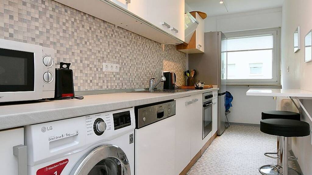 Balkon, Tiefgaragenstellplatz, TV-Gerät, Kabel-TV, Waschmaschine, Hausmeister, Badewanne, Einbauküche, Bettwäsche, Doppelbett, Fliesenboden, Geschirrspülmaschine, Handtücher, Parkettboden, Mikrowelle, WLAN, Zentralheizung