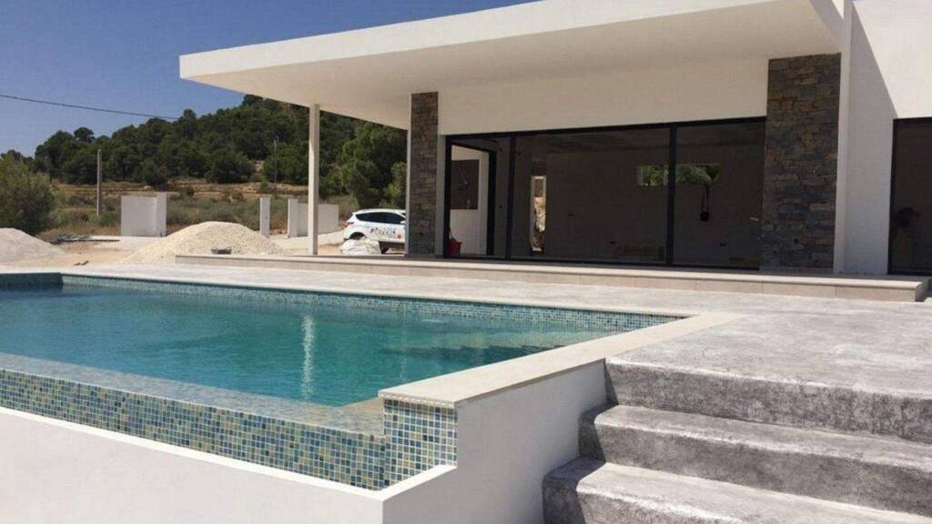 Der private Swimmingpool mit großzügiger Sonnenterrasse lädt zu entspannten Stunden im Freien ein und ermöglicht ein Leben in vollen Zügen unter der Sonne Spaniens. Die Villa wird auf einem 12.000 m² großen Grundstück errichtet, wobei das Wohnhaus selbst 210 m² misst und zusätzlich eine 40 m² große Garage bietet. Die Lage garantiert traumhafte Ausblicke auf die umliegende Landschaft und verbindet gleichzeitig Nähe zu Aspe, La Romana und Novelda mit einem Gefühl von Abgeschiedenheit und Ruhe.