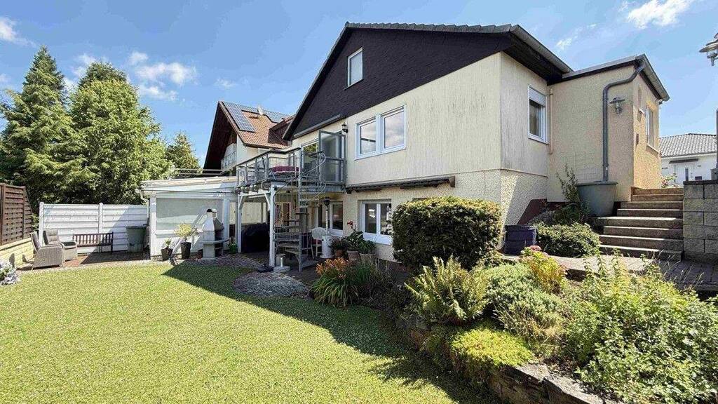 Die wahre Größe der Immobilie erschließt sich auf den zweiten Blick, denn die Hanglage wurde hier bestens genutzt, um mit durchdachter Planung viel Platz für Ihre Lieben zu schaffen. Die Familie trifft sich im Erdgeschoss im ansprechend gestalteten Wohn- Ess- und Kochbereich - drei ineinander übergehende wunderbar helle Räume. Vom Balkon aus genießen Sie den Fernblick und haben über eine Treppe direkten Zugang zum Garten. Zwei Schlafzimmer und ein Bad sind als privater Rückzugsort über einen separaten Flur erreichbar und ein praktischer Abstellraum und ein zusätzliches Gäste-WC runden das Raumangebot dieser Etage ab. Im Souterrain des Hauses stehen zwei weitere Zimmer, ein Bad und zusätzliche Stellflächen zu Ihrer Verfügung, ideal als Kinderzimmer, Büro oder für Ihre Hobbies. Auch die Nutzung als Einliegerwohnung ist möglich. Weiteres Ausbaupotential ist im Dachgeschoss vorhanden.