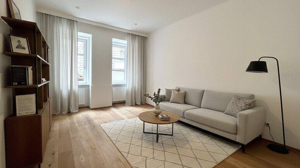 Bei den möblierten Fotos handelt es sich um KI-generiertes Homestaging das Objekt wird unmöbliert verkauft, Badezimmer/WC bleiben im Objekt.