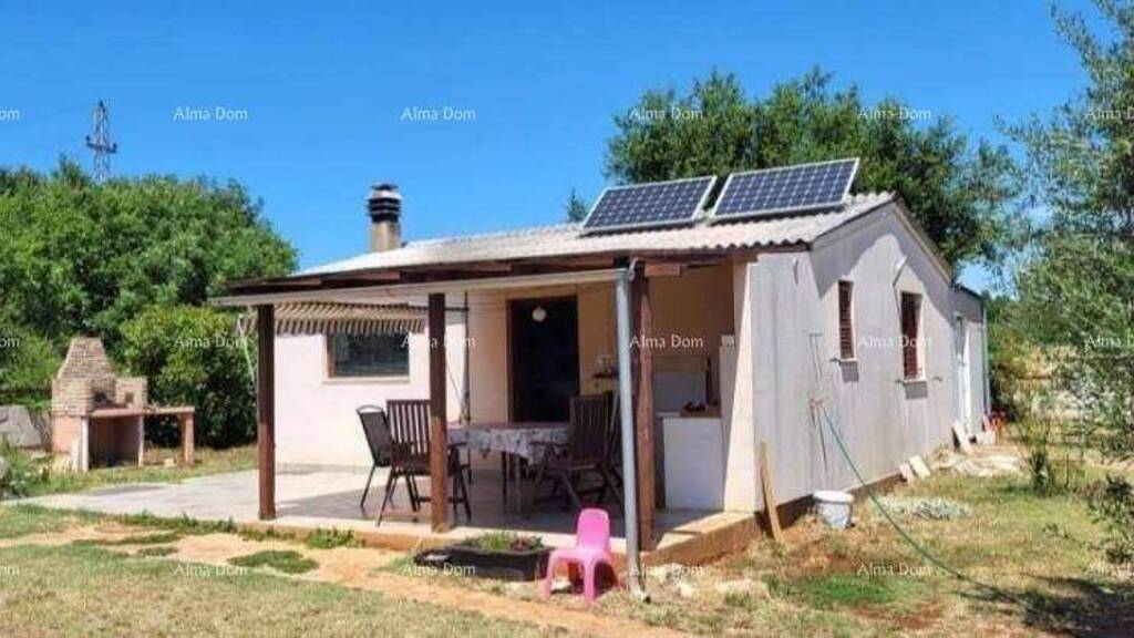 Es besteht aus einem Wohnzimmer mit Küche, einem Schlafzimmer, einem Badezimmer, einem Büro und einem Abstellraum. Vor dem Haus befindet sich eine überdachte Terrasse von 16 m mit einer Sommerküche und einem Grill ideal für das Leben im Freien.