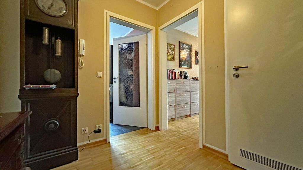 Das großzügige Wohnzimmer bildet das Herzstück der Wohnung und bietet direkten Zugang zum sonnigen Balkon, ideal für entspannte Stunden im Freien. Ein angrenzendes Zimmer eröffnet vielseitige Nutzungsmöglichkeiten, ob als Schlafzimmer, Homeoffice oder persönlicher Rückzugsort. Ein weiteres Zimmer, vom Flur aus begehbar, bietet zusätzlichen Raum für individuelle Wohnkonzepte und eignet sich perfekt für Paare, kleine Familien oder Menschen mit Platzbedarf. Das Bad ist mit einer Wanne und einem Waschbecken ausgestattet.