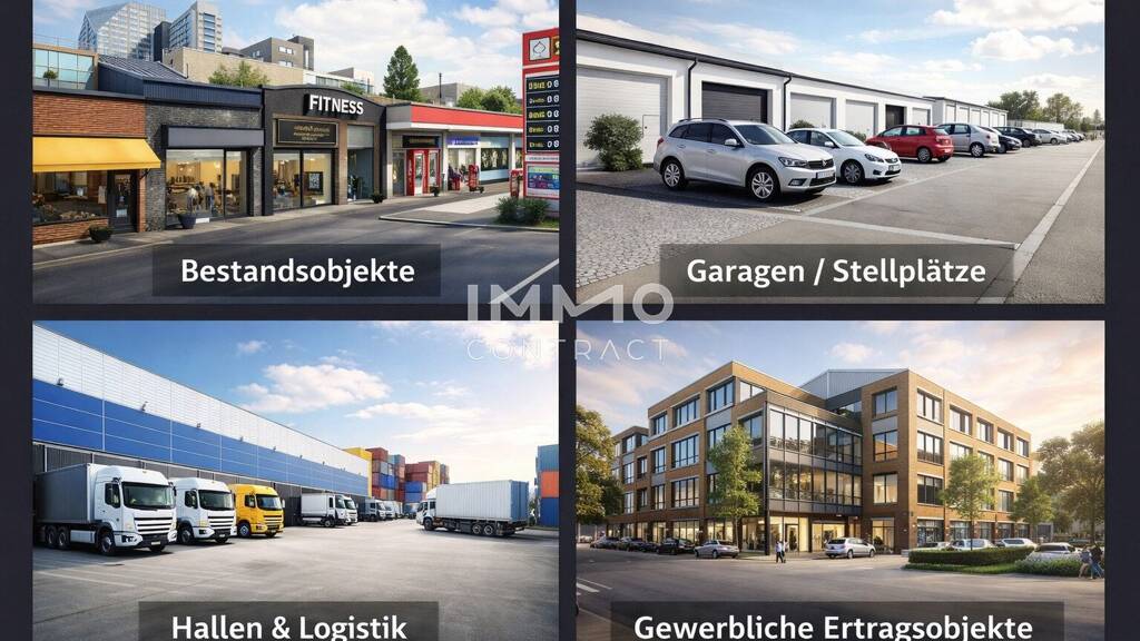 Auch einzelne Geschäftslokale - frei verfügbar oder stabil vermietet - sowie Logistikhallen, Hallenflächen, Büros, Garagen und Stellplätze für PKW als nachhaltige Kapitalanlage.