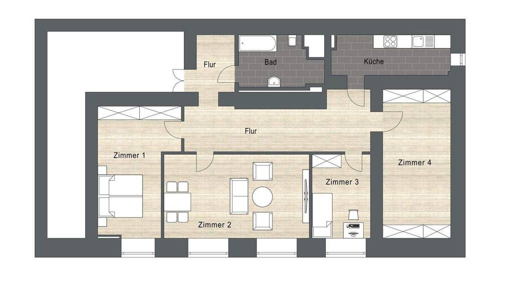 Die 4-Raum-Wohnung liegt in einem ruhigen Hinterhaus im beliebten Stadtteil Leipzig Gohlis-Süd.