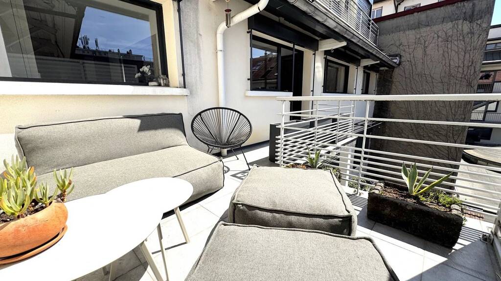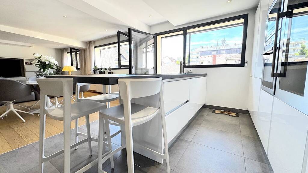 In the heart of downtown Annecy, this loft-style 4 bedroom apartment occupies the top floor of a quiet building.