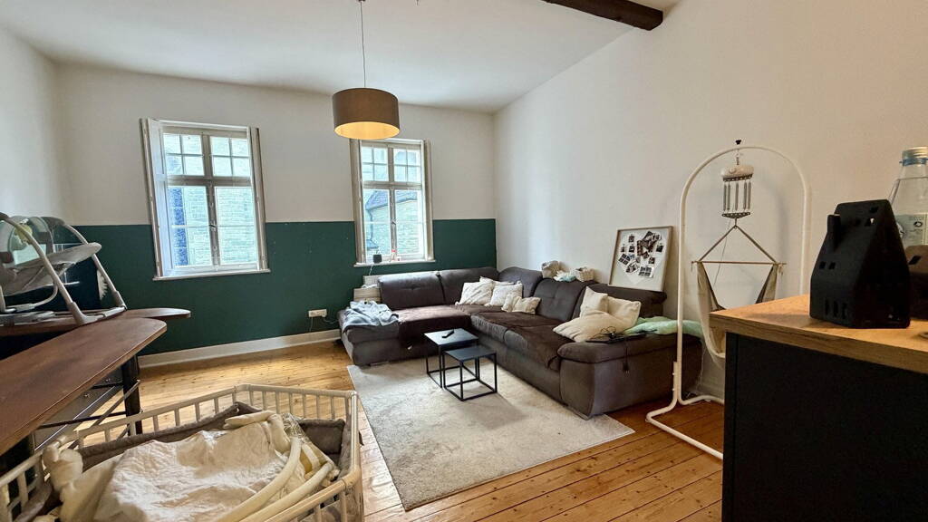Großzügige Maisonette-Wohnung über zwei Etagen in einem gepflegten Altbau in Werl-Büderich - mit ca. 109 m² Wohnfläche, vier Zimmern (siehe Grundriss) und einer eigenen Terrasse. Die Wohnung besticht durch originale Holzdielenböden, hohe Decken mit freiliegenden Dachbalken im Obergeschoss sowie lichtdurchflutete Räume mit charakteristischen Altbau-Sprossenfenstern.