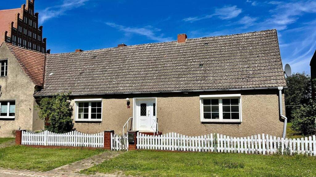 Das Haus liegt im Zentrum von Alt Krüssow, einem kleinen, ruhigen Ortsteil mit historischer Prägung. Die direkte Nachbarschaft zur malerischen Dorfkirche unterstreicht den traditionellen Charakter der Umgebung. Alt Krüssow zeichnet sich durch seine ländliche Ruhe und die Nähe zur Natur aus, was den Ort besonders attraktiv für Erholungssuchende macht. Das dörfliche Umfeld bietet eine gute Anbindung an die umliegenden Städte und Gemeinden, wodurch alltägliche Besorgungen und Freizeitaktivitäten leicht erreichbar sind. Die Gemeinschaft im Dorf ist lebendig, und es gibt zahlreiche Möglichkeiten, sich in das Dorfleben zu integrieren. Die sanfte Hügellandschaft und die weiten Felder laden zu Spaziergängen und Erkundungen ein, was das Wohnen in Alt Krüssow besonders lebenswert macht.