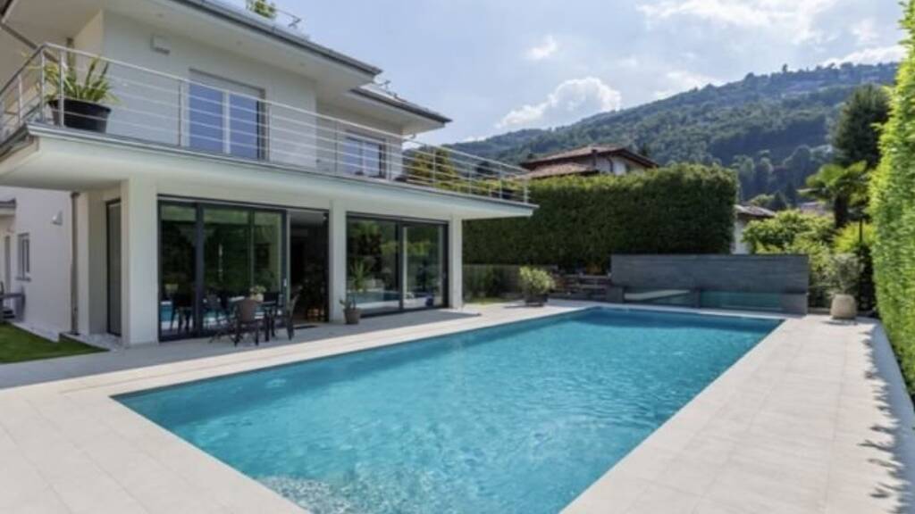Stresa, Carciano, nur wenige Meter vom See und ein paar Schritte vom Hauptplatz entfernt, steht diese moderne freistehende Villa mit Pool und Seeblick zum Verkauf. Die im Jahr 2019 renovierte Immobilie verfügt über eine wirklich exklusive Ausstattung sowie über funktionale und moderne Räume. Das Grundstück, auf dem diese bezaubernde Immobilie steht, ist etwas mehr als 600 Quadratmeter groß. Im Erdgeschoss finden wir die Eingangshalle, die zum Wohnzimmer führt, neben dem sich der Essbereich befindet, der durch einen zentralen Kamin geteilt ist. Beide Bereiche verfügen über große Fenster mit Blick auf den Pool. In der Nähe des Esszimmers, getrennt durch ein großes und modernes Rauchglasfenster, befindet sich die komfortable Küche mit zentraler Kochinsel und Blick auf den Garten. Ein großes Badezimmer mit Jacuzzi-Badewanne mit Chromotherapie und ein Technikraum/ Waschküche vervollständigen diese Etage. Im ersten Stock befinden sich drei Schlafzimmer. Eines davon ist das Hauptschlafzimmer mit begehbarem Kleiderschrank, en-suite Badezimmer mit Hamman und Zugang zur großen Terrasse mit Seeblick. Es gibt ein weiteres Badezimmer für die beiden anderen Schlafzimmer. Im Dachgeschoss befindet sich eine exclusive luxuriöse Suite mit eigenem Bad und großer Terrasse mit 180-Grad-Seeblick. Der Garten umgibt das gesamte Anwesen und beherbergt einen wunderschönen, großen Salzwasser-Pool, der von einer Sonnenterrasse und einem sehr malerischen Wasserfall umgeben ist. Das Anwesen verfügt über eine Zufahrt mit einem Parkplatz im Inneren und wenige Meter entfernt in einem freistehenden Gebäude gibt es eine große Garage, die drei Autos oder sogar ein großes Boot beherbergen könnte.