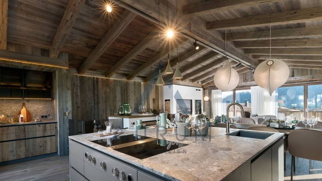 Dieses im Stile eines alten Tiroler Bauernhofes gebaute Chalet fügt sich perfekt in die Bauarchitektur der Region und in die umliegende Naturlandschaft ein. Das Chalet ist hochwertigst ausgestattet und wird komplett möbliert verkauft.