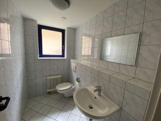Das Büro ist ausgestattet mit robustem Teppich-Belag, Fliesen in den Nasszellen.