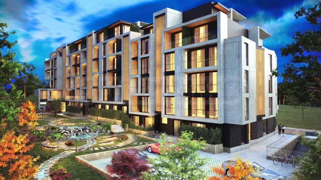 Das Gebäude besticht durch sein elegantes Design mit klaren Linien, einer Kombination aus Travertin und Holz sowie bodentiefen Fenstern. Diese sorgen nicht nur für viel Tageslicht, sondern eröffnen auch einen atemberaubenden Blick auf das Vitosha-Gebirge und die umliegenden Grünflächen. Den Eigentümern steht ein üppig gestalteter Garten mit Spazierwegen und Erholungsbereichen zur Verfügung, der mit hoher und niedriger Vegetation sowie Wasserspielen gestaltet ist. Der beschränkte Zugang gewährleistet mehr Sicherheit und Ruhe. Parkplätze sind in der Tiefgarage vorhanden, und im Erdgeschoss befindet sich ein großer Supermarkt.