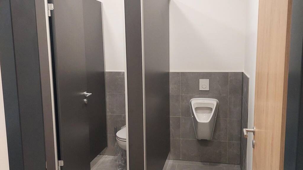Das Gebäude passt sich durch seine moderne Architektursprache sehr gut der Umgebung an. Eine helle Natursteinfassade mit Aluglas-Elementen und großzügigen Fensterfronten verleihen dem Objekt ein zeitgemäßes und freundliches Erscheinungsbild.
