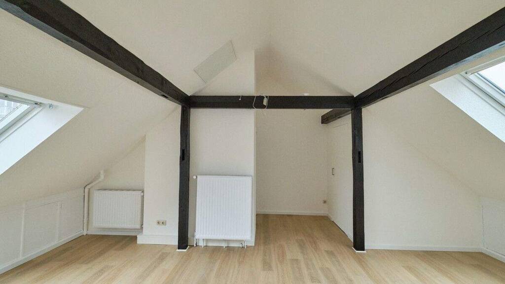 Die Wohnung erstreckt sich über zwei Ebenen (4. OG + DG) und bietet mit rund 115 m² Wohnfläche sowie vier Zimmern ein großzügiges und zugleich funktionales Raumangebot. Der Eingangsbereich führt in einen zentralen Flur, von dem aus das modernisierte Duschbad, die Einbauküche sowie drei Zimmer zugänglich sind. Eines der Zimmer bietet über eine Treppe Zugang zum ausgebauten Dachgeschoss, ein weiteres verfügt über einen direkten Zugang zum Balkon.