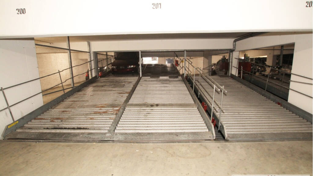 Dieser Doppelparkerstellplatz befindet sich in einer abgeschlossenen Tiefgarage eines Mehrfamilienhaueses in Ludwigshafen Mitte.