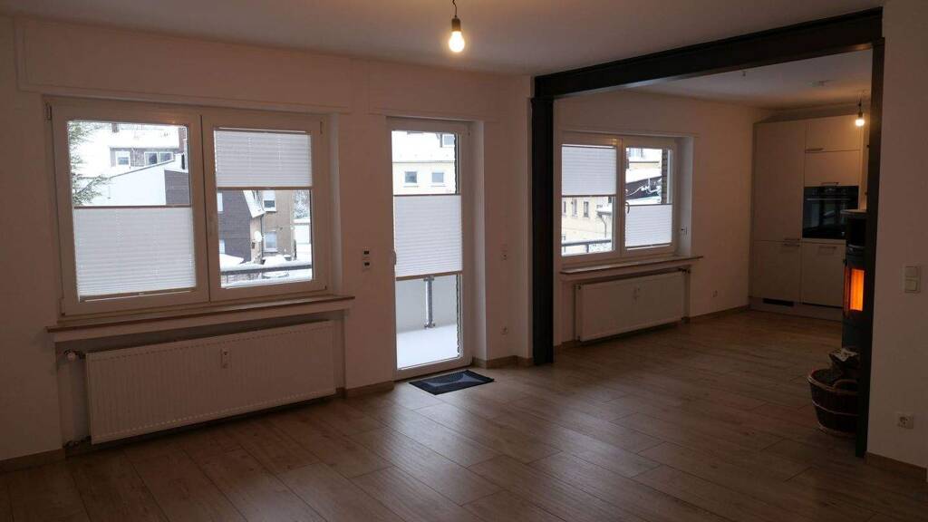 Die Wohnung befindet sich im 1. Obergeschoss eines Zweifamilienhauses mit Einliegerwohnung von 1958 und wurde gerade frisch renoviert und in 2018 modernisiert. Die Wohnfläche beträgt ca. 113 m² bei folgender Raumaufteilung: Diele, geräumiges Wohnzimmer mit offener Küche und Austritt auf den Balkon, Schlafzimmer, Badezimmer mit ebenerdiger Dusche, Fenster und Anschluss für Waschmaschine und Trockner, Abstellraum. Im Dachgeschoss befindet sich ein großer Studioraum sowie ein Wannenbad mit Fenster.