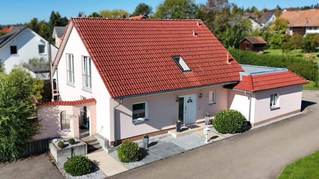 Das gepflegte Wohnhaus besticht durch seine ruhige, sonnige Lage und einen unverbaubaren Fernblick bis zu den Alpen. Große Fensterflächen durchfluten die Räume mit Licht und schaffen eine angenehme Wohnatmosphäre. Die gelungene Raumaufteilung verteilt sich auf zwei Wohneinheiten: Die Hauptwohnung bietet großzügige Wohnbereiche, mehrere Schlafzimmer, ein Badezimmer sowie ein gemütliches Wohnzimmer mit direktem Zugang zur Terrasse oder dem Garten.