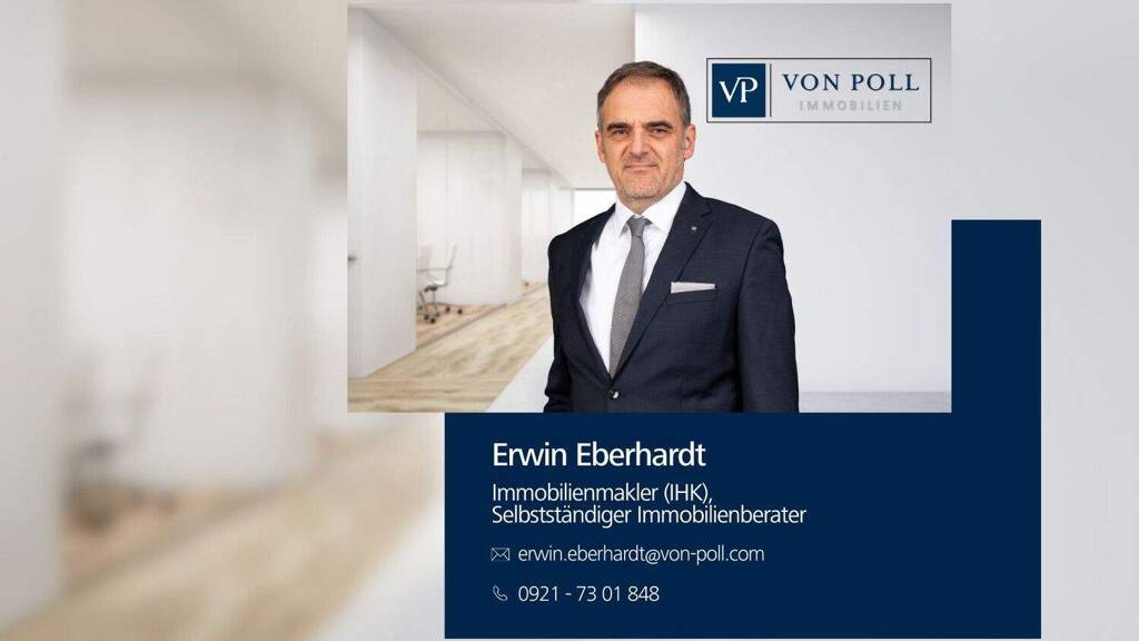 Für weitere Details kontaktieren Sie bitte Herrn Erwin Eberhardt, selbstständiger Immobilienmakler bei VON POLL IMMOBILIEN Bayreuth, telefonisch unter 0921 73 01 848 oder per E-Mail unter erwin.eberhardt@von-poll.com.