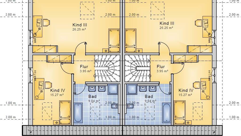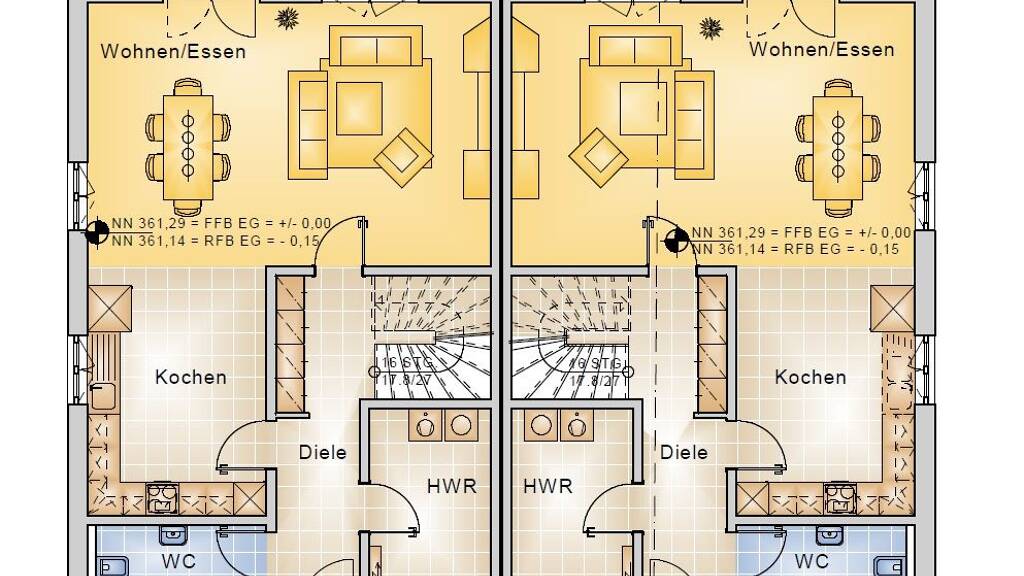 Die Doppelhäuser sind noch nicht erstellt und werden ähnlich den Einfamilienhäusern ausgestattet.