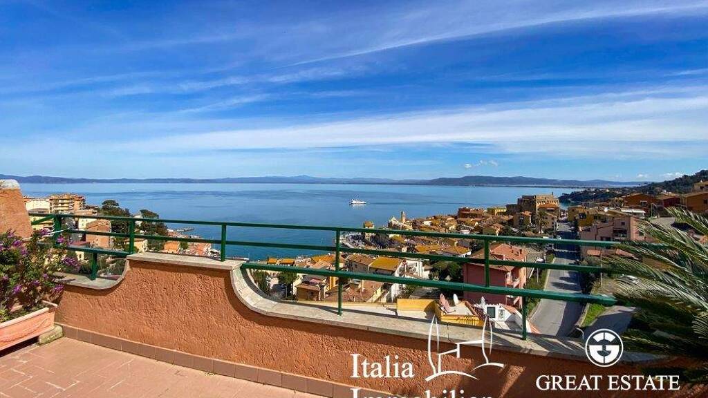 Penthouse mit herrlicher Terrasse mit Meerblick in Porto Santo Stefano, in der Nähe der wichtigsten Dienstleistungen. Die Immobilie besteht aus einem Wohnbereich mit direktem Zugang zur Terrasse, einer separaten Küche, zwei Doppelschlafzimmern, einem Einzelzimmer und zwei Bädern.