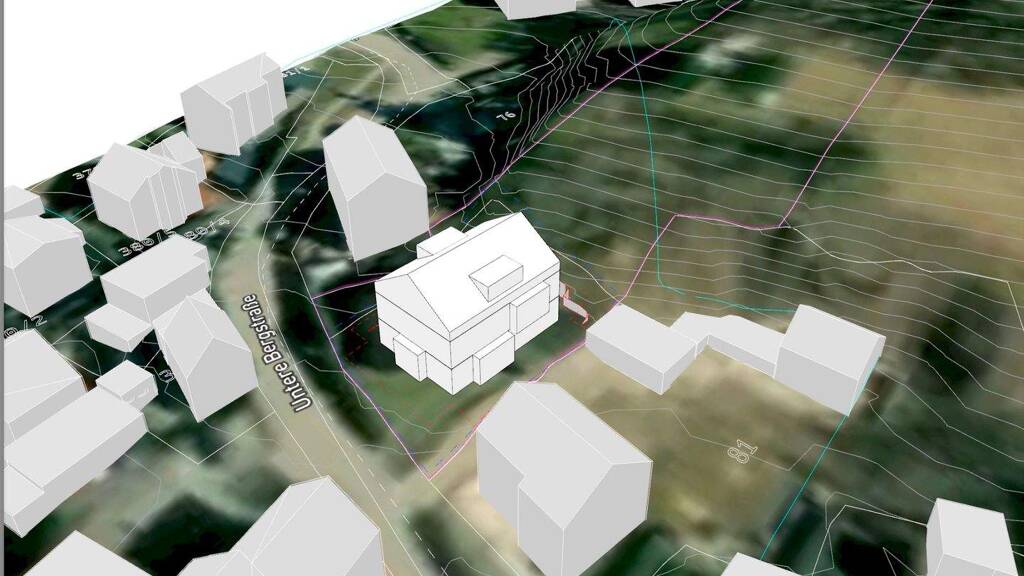 Die Hangfläche sorgt für architektonische Dynamik und attraktive Bebauungslösungen - verschiedene Machbarkeitsstudien liegen vor und Kontakt zum Bauamt besteht auch schon.