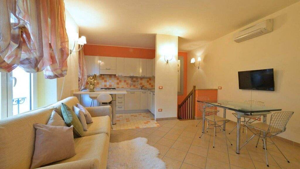 Diese zum Verkauf stehende 2-Zimmer-Wohnung Ligurien in Alassio erstreckt sich über zwei Etagen: Im Obergeschoss befindet sich ein Wohnzimmer mit offener Küche und einem Erkerfenster, im Untergeschoss befinden sich Schlafzimmer und Badezimmer. Zum Anwesen gehört außerdem ein ca. 80 qm großer Innenhof mit Zufahrt - ein privater Bereich, der den Wohnkomfort erhöht.