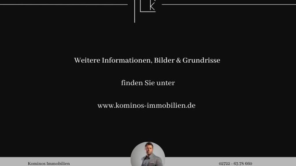 Gerne stellen wir Ihnen diese Immobilie auch persönlich vor. Rufen Sie mich unter 02722 - 6378660 an und vereinbaren Sie Ihren Informationstermin!Weitere Informationen, Grundrisse und Fotos zu dieser und anderen Immobilien finden Sie auf kominos-immobilien.de