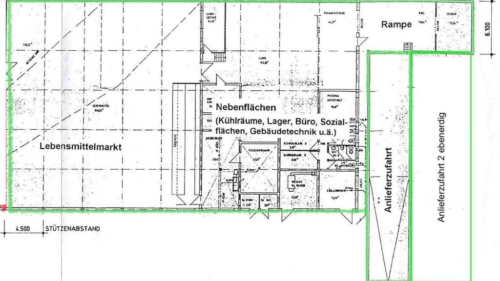 Eckdaten der gesamten Halle: - ca. 40,5 m Breite - ca. 24,05 m Tiefe - ca. 974 qm Hallenfläche - zuzüglich ca. 13,10 m x 6,10 m Rampe mit überdachtem, abgeschlossenem Außenlager - ca. 50 Stellplätze - flexible Raumaufteilung, keine tragenden Innenwände; Brandwand vorhanden - Rüttelboden mit Betonwerksteinplatten, hochbelastbar mit Hubwagen/Gabelstapler - zusätzliche Rolltore, Fenster, Eingangstüren jederzeit möglich - großer Stromanschlusswert von mindestens 3 x 180 A - Gaszentralheizung mit Deckenheizlüftern und Wärmemengenzähler - LKW-Zufahrt - Laderampe und Ladeanfahrt zum Umladen zwischen 2 LKWs