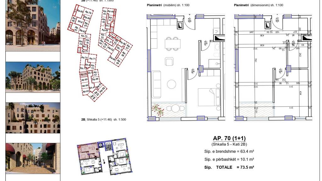 Apartement 1+1 (Ap. 35) Fläche: 69,7 m² Etage 1B; Eingang 7 1 Schlafzimmer 1 Wohnzimmer mit Küche Balkon Badezimmer