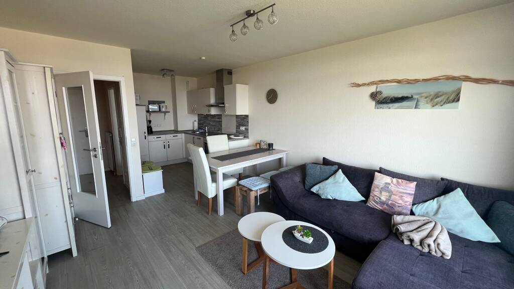 Diese helle 2 Zimmer Wohnung liegt im 2. OG des beliebten Hauses „Strandhotel“ in Dahme, direkt am Deich. Vom Wohn- und Schlafzimmer, sowie dem Balkon genießen Sie einen tollen 180 Grad Panorama-Meerblick über den Deich auf die Ostsee. Das Strandhotel wurde 1975 in konventioneller und massiver Bauweise auf einem über 4.000 qm großen Grundstück errichtet und verfügt insgesamt über 73 Einheiten. Bei dem Grundstück handelt es sich um Erbpacht. Der Erbpachtzins und die Instandhaltungsrücklage sind bereits im Hausgeld enthalten. Das Erbbaurecht läuft noch bis 2072. Zur Wohnung gehört ein PKW-Stellplatz. Den Bewohnern steht ein Schwimmbad mit Saunabereich zur Verfügung. Weiter sind Wasch- und Trockenraum, sowie ein großzügiger Fahrradkeller und ein Tischtennisbereich vorhanden. Die Wohnung besteht aus einem Wohnbereich mit offener Küche und Essbereich, einem separaten Schlafraum und einem hellen Duschbad. Vom Wohnzimmer gelangen Sie auf den überdachten Balkon, Richtung Ostsee. Im Untergeschoß haben Sie eine weitere abschließbare Abstellfläche für, beispielsweise Fahrräder oder Strandequipment. Außerdem steht für die Bewohner, auf dem „Oberdeck“ des Hauses eine große gemeinschaftliche Dachterrasse mit Panorama-Blick über die Ostsee zur Verfügung. Hier sind Sie unter freiem Himmel und können fast die gesamte Promenade überblicken.