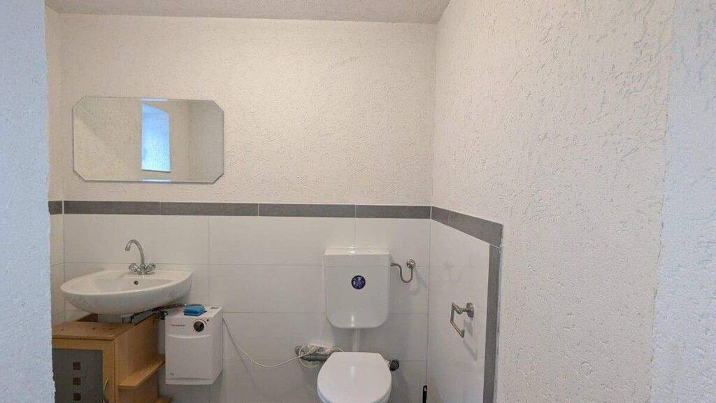 Auf dem Grundstück befindet sich zudem ein Nebengebäude (2), welches funktional mit dem Restaurant verbunden ist. Hier sind zwei Toiletten für das Restaurantbetrieb untergebracht, sowie ein kleiner Büroraum. Die 3-Zimmer-Wohnung aus dem Obergeschoss im Vorderhaus erstreckt hier in das Nebengebäude.