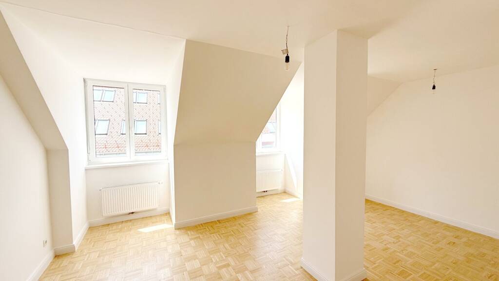 Die sanierte 4-Zimmerwohnung befindet sich im Dachgeschoss (mit Lift), bietet eine Nutzfläche von ca. 88 m² und einen Garten.