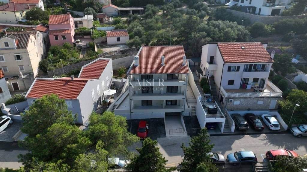 Kaiser Immobilien vermittelt den Verkauf dieser wunderschönen 5*-Wohnung in einem Neubau im Herzen von Mali Losinj. Die Wohnung liegt mitten im Zentrum und nur 120 Meter vom Meer entfernt in einem dreistöckigen Wohnhaus mit Garage. Die Wohnung im zweiten Stock hat eine Gesamtfläche von 105 m2 mit einem Garten von 25 m2. Die Wohnung hat einen wunderschönen Blick auf die Bucht von Mali Losinj. Die Größe des Gartens beträgt 25 m2. Zur Wohnung gehören 2 Parkplätze in der Garage im Untergeschoss des Gebäudes. Die Lage in der Altstadt garantiert Ruhe, während die Nähe zu allen Annehmlichkeiten und zum Stadtzentrum diese Immobilie sowohl für den Urlaub als auch für den dauerhaften Aufenthalt praktisch und attraktiv macht. Die Entfernung zur berühmten Bucht Cikat an der Westküste der Insel Losinj beträgt 500 Meter. Eine ideale Gelegenheit, in den Tourismus zu investieren und die Perle der Adria zu genießen. STANDORT: Mali Losinj - ein einzigartiges Mikroklima, unberührte Natur, der medizinische Duft von Kiefern und klares Meer sind nur einige der Merkmale, die die Insel Losinj schmücken, die weltweit als Insel der Vitalität bekannt ist. An der Ostküste gelegen, verzaubert diese malerische Stadt mit ihrer Schönheit und ihrem Charme. Neben wunderschönen, schattenspendenden Stränden und versteckten Buchten lockt die Stadt mit ihren vielen Restaurants und Tavernen mit traditioneller Küche viele Besucher an. Dies ist ein Ort, an dem Sie jedes Mal die verborgenen Schätze des Mittelmeers entdecken werden. Entfernung der Immobilie zum Ort: Mali Losinj - Flughafen Rijeka, 102 km Mali Losinj - Flughafen Zagreb, 268 km Mali Losinj - Ljubljana, 224 km Mali Losinj - Wien, 605 km Mali Losinj - Prag, 937 km Mali Losinj - München, 632 km
