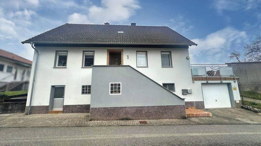 Die Immobilie verfügt außerdem über eine Garage sowie zusätzliche Stellplätze direkt auf dem Gelände. Eine sonnige Terrasse mit neuem Geländer geht in den großzügigen Garten über und schafft einen attraktiven Außenbereich zum Entspannen und Verweilen im Freien.