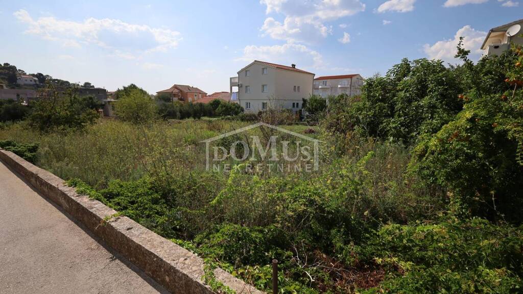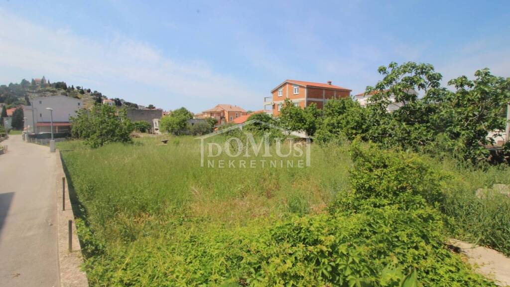 Im weiteren Zentrum von Tribunj befindet sich ein Baugrundstück von 368 m². Das Grundstück ist teilweise eingezäunt, regelmäßige Form, 29,16 m lang entlang der asphaltierten Zufahrtsstraße, 16,89 m breit im oberen Teil und 7,94 m breit im unteren Teil. Gemäß dem Raumordnungsplan der Gemeinde Tribunj liegt das Grundstück in der Zone M1, wo die Mindestgrundstücksfläche für Einfamilienhäuser 350 m2 beträgt und die Möglichkeit besteht, zwei Wohneinheiten zu bauen. Komplette Infrastruktur ist unmittelbar neben dem Grundstück, sowie eine asphaltierte Auffahrt. Das Meer und das Zentrum sind 200 m entfernt und der Strand ist 400 m entfernt.