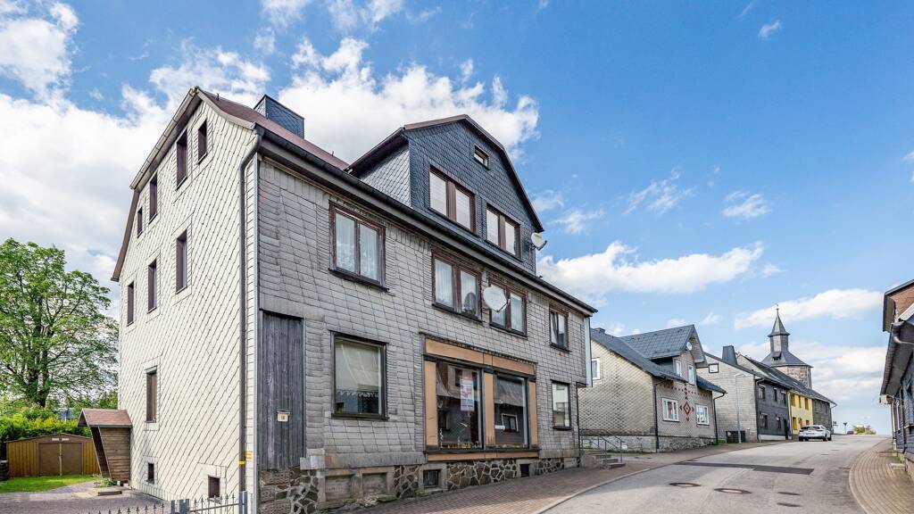 Das angebotene Haus wurde 1920 erbaut. Im Erdgeschoss befindet sich aktuell eine leergezogene Gewerbeeinheit mit großen Verkaufs-/Speiseraum und diversen kleineren, angeschlossenen Räumen. Die Gewerbeeinheit könnte sich als Büro, Verkaufsfläche oder als Café eignen. Gerade letzteres fehlt in der Gemeinde.