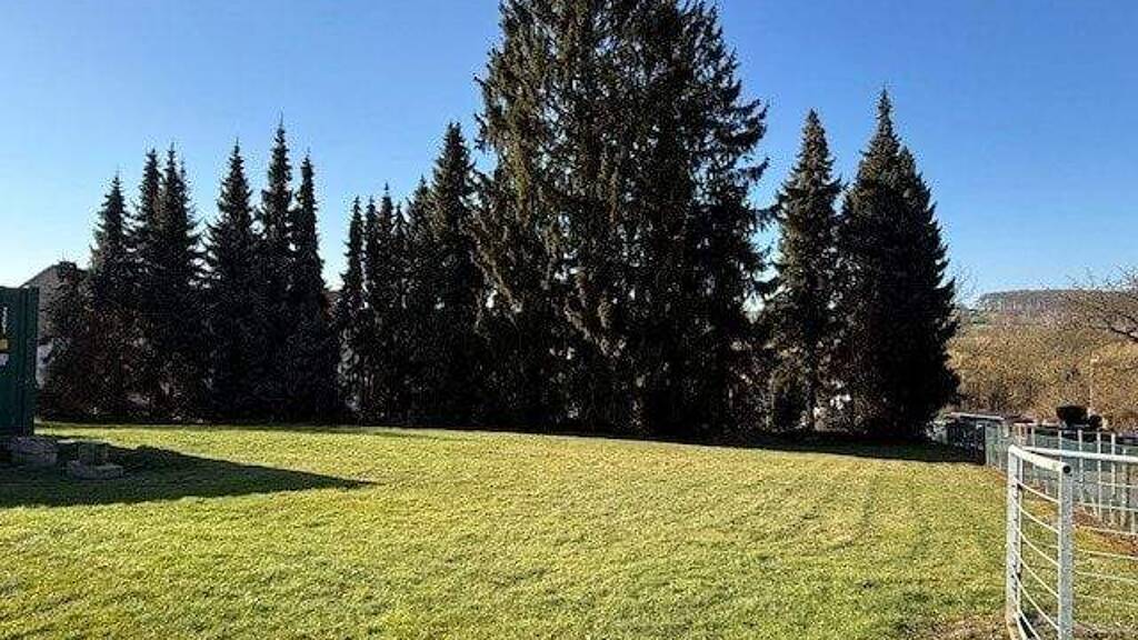 Die auf den Bildern zu sehenden Tannen werden vom Eigentümer gefällt und entsorgt, so dass Sie eine schöne Aussicht erhalten und Ihr Bauvorhaben planen können.