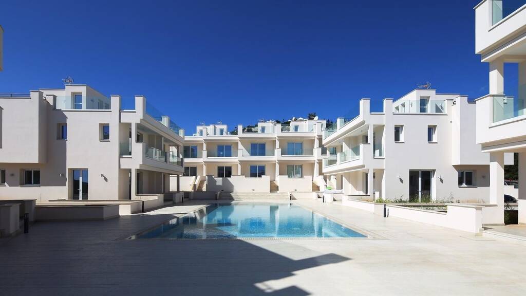 Eine bezaubernde Wohnanlage, die moderne Eleganz mit mediterranem Design in einer ruhigen Nachbarschaft verbindet, nur wenige Minuten von der Stadt entfernt.